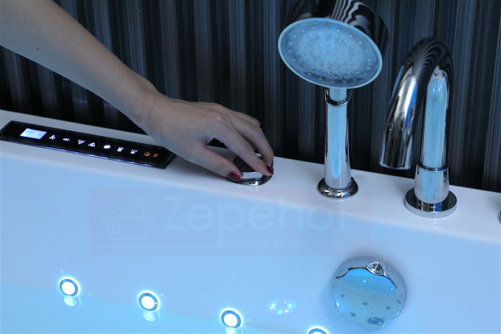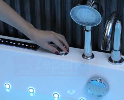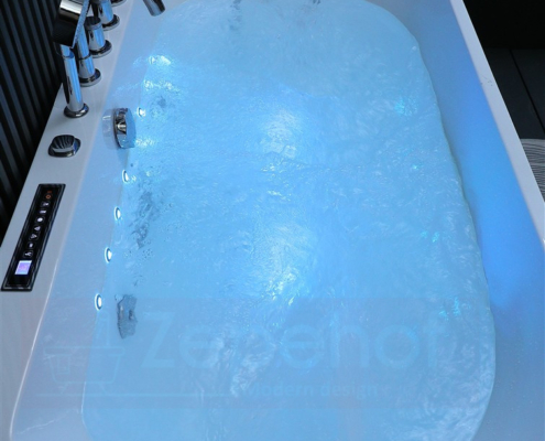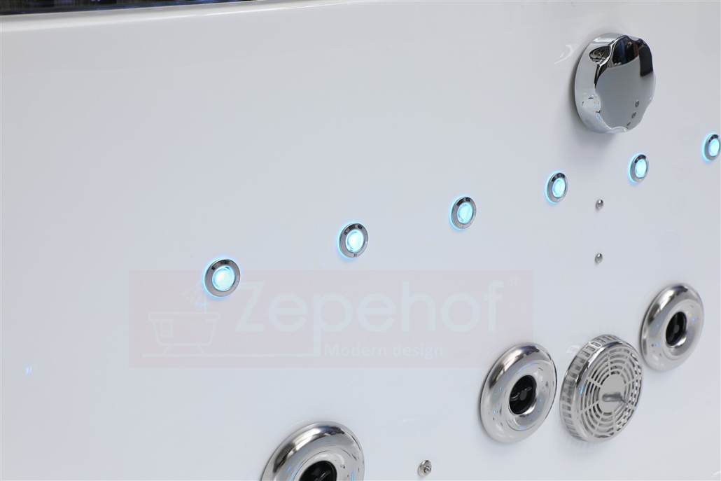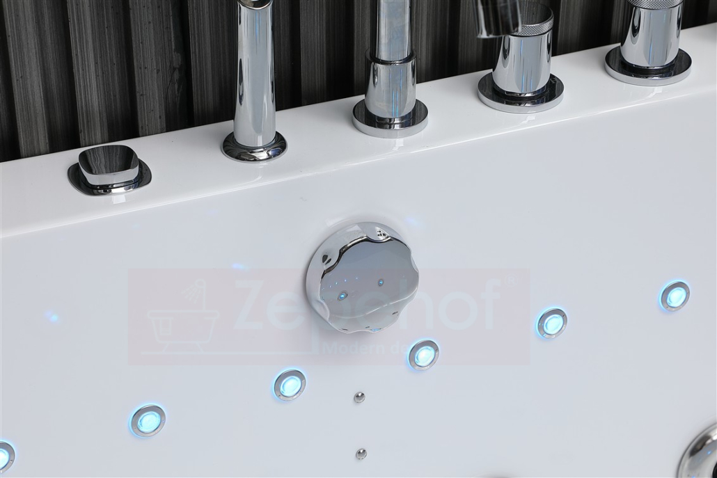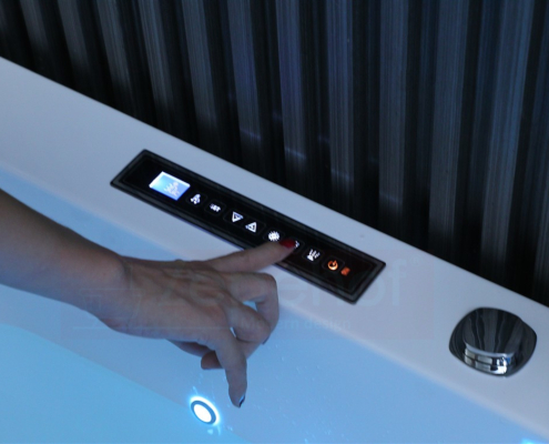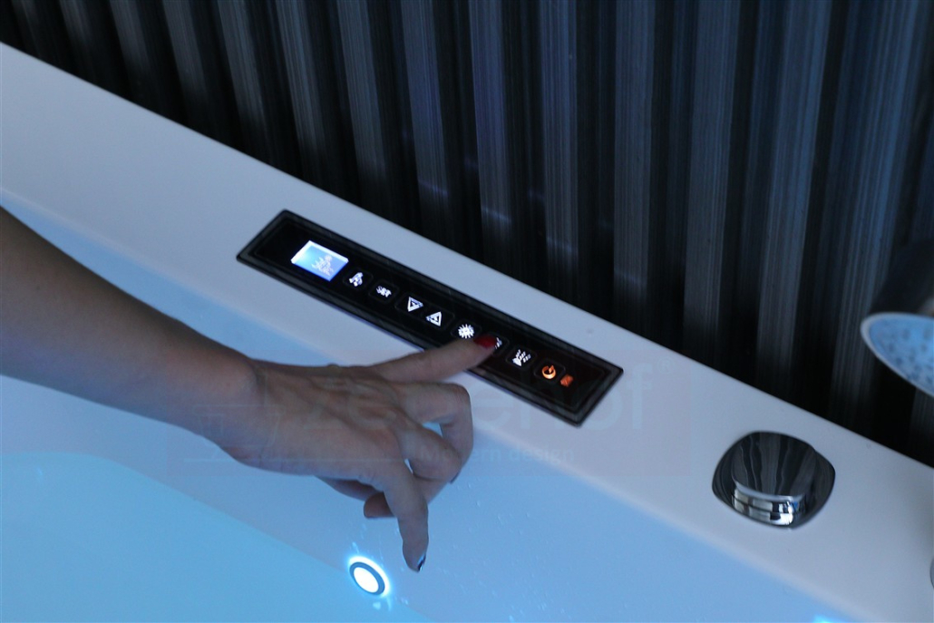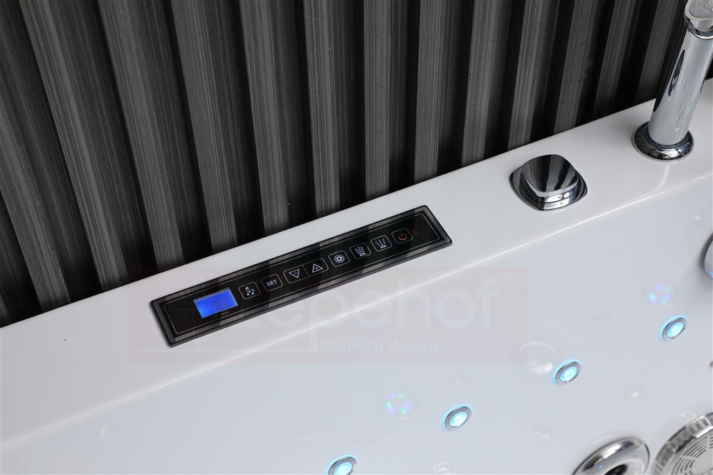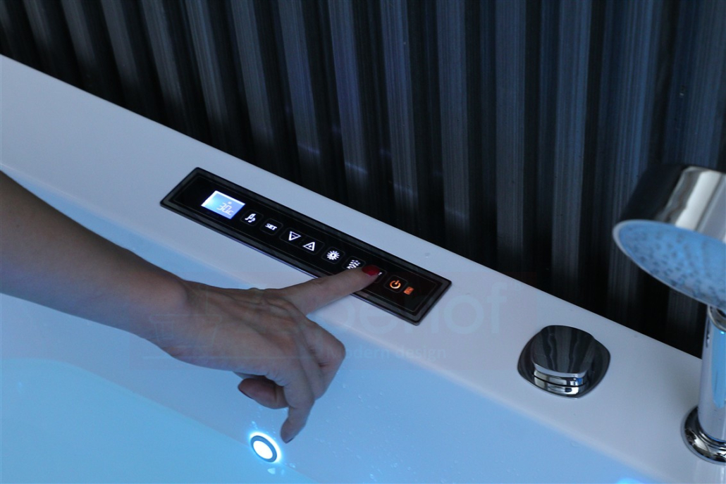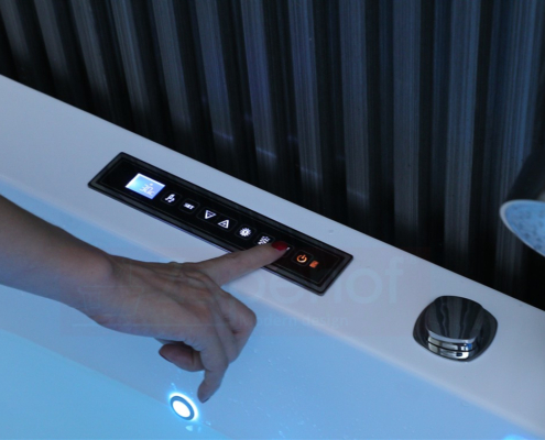 elektronisches, von hinten beleuchtetes Bedienfeld (Steuerung: Massage, Radio, Beleuchtung, Ozon usw.)
