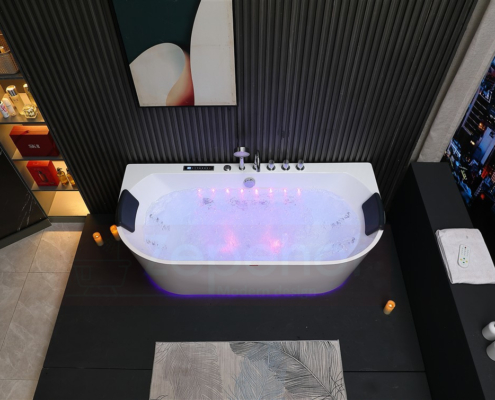 Hinweis: Die Düsen sind im Boden der Badewanne vollkommen flach. Beim Baden tut nichts weh.