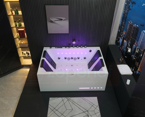 Wassermassage (5+5 große Düsen in der Badewannenwand, 6 kleine Düsen für die Rückenmassage auf jeder Seite, Insgesamt 10 Stück), Wasserpumpe mit einer Frequenzweiche von 2,0 PS (TÜV, CE-Zertifikat)