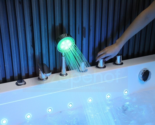 elektronisches, von hinten beleuchtetes Bedienfeld (Steuerung: Massage, Radio, Beleuchtung, Ozon usw.)